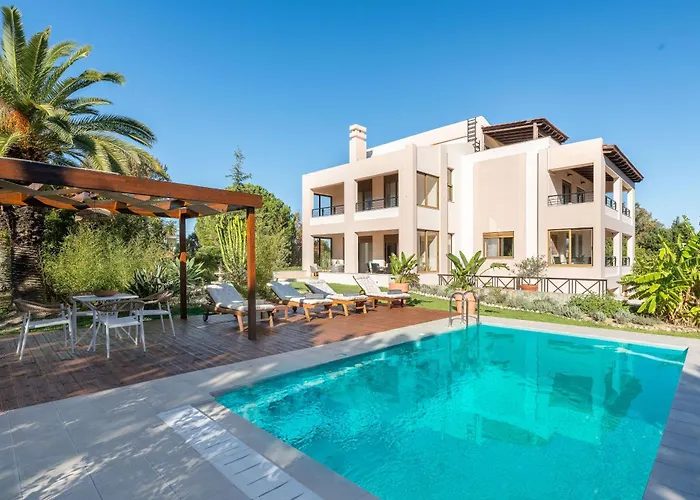 Coral Tree Luxury Villa Jalisos dysponuje tarasem z widokiem na górę, 15 min jazdy od lotniska Rodos. Willa oferuje basen, a także bilard dla aktywnych Gości.